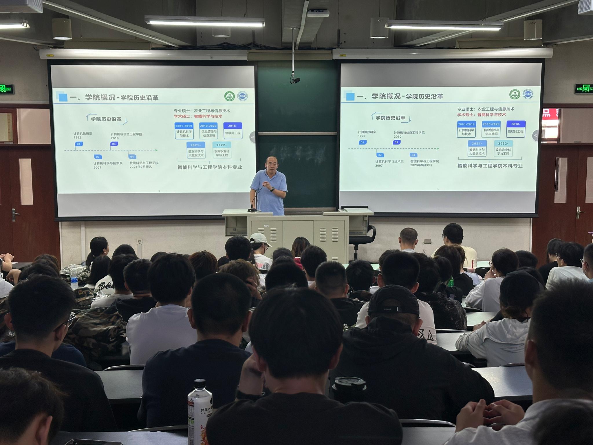 的基本情况,从专业建设到科研情况,从上课到竞赛,让新生找到学习的方向和目标,收获满满。强调新生们要培养自我管理的能力,积极自主地学习,科学地安排自己的大学生活。