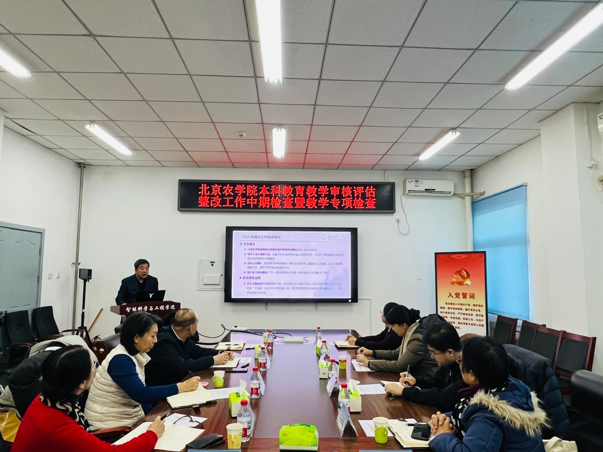 副院长魏占勇从教育教学审核评估整改中期推进情况、2025年专业建设重点工作完成情况、教学专项自查情况、国际办学人才培养质量等相关工作进行了汇报。