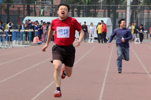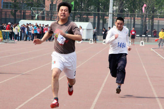 姚山和朱晓东两位老师参加了男子教工青年组100米的比赛,分别获得了小组第三和小组第一的成绩,赛后的采访中,两位老师笑着说到成绩不重要,重要的是参与,明年还是会参加。