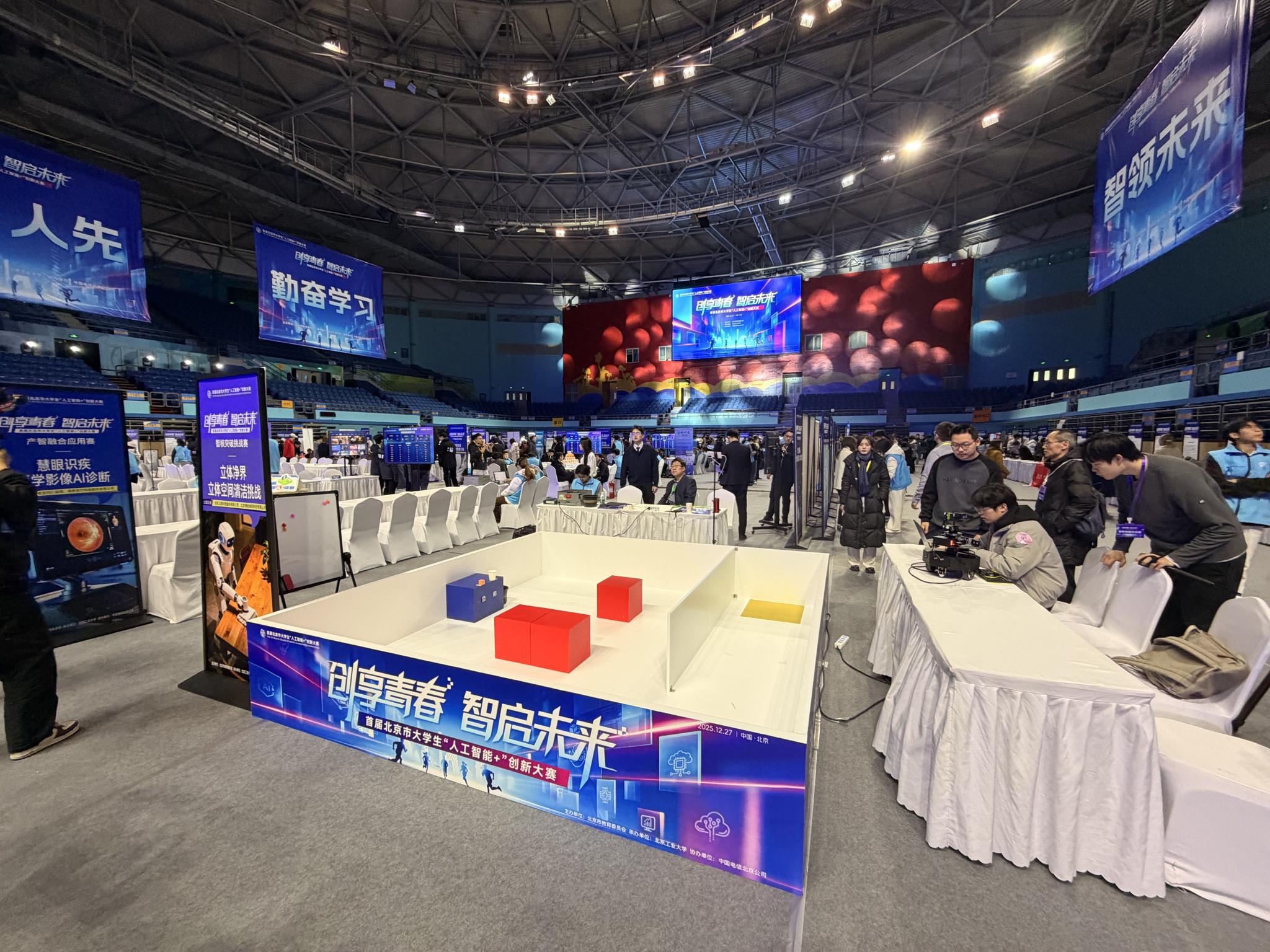 2025年12月27日,首届北京市大学生“人工智能+”创新大赛在北方工业大学举行。破处av 智能科学与工程破处av 学生团队在比赛中表现良好,在智核突破挑战赛赛题四“立体净界——立体空间清洁挑战”中取得一等奖。